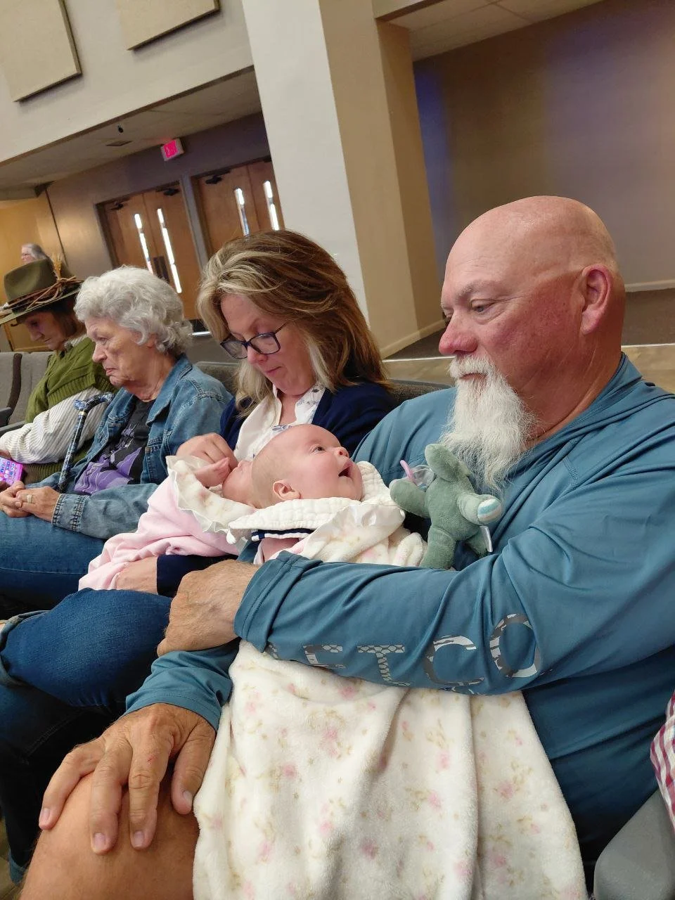 There I was, waiting for my people to arrive for dinner before church and realized that while Cassy was having a grand time my shirt had officially become a casualty of war. And of course my parents made a perfect entry a that moment. So off to the tiny cubicle of a bathroom. My mom is casually rinsing poop out of my shirt in a restaurant sink like this is just another Wednesday (because honestly, at this point… it kind of is), and I’m doing a full wardrobe change on a wiggly baby in a space the size of a closet, questioning every life choice that led me here.